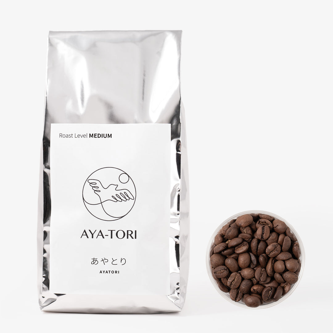 AYA-TORIで扱うのは、お客さまからのご注文毎に、生豆からローストする自家焙煎コーヒー豆。お湯を注ぐと粉がふわっと大きく膨らみ、芳醇な香りが広がるのはその証拠。